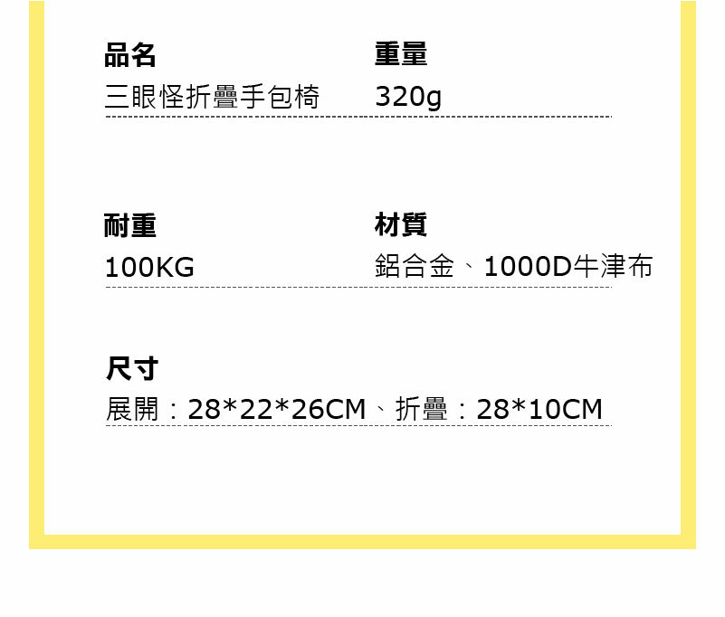 【Disney 迪士尼】三眼怪折疊手包椅(正版授權-MESUCA麥斯卡/露營、野餐、郊遊、排隊皆適用)